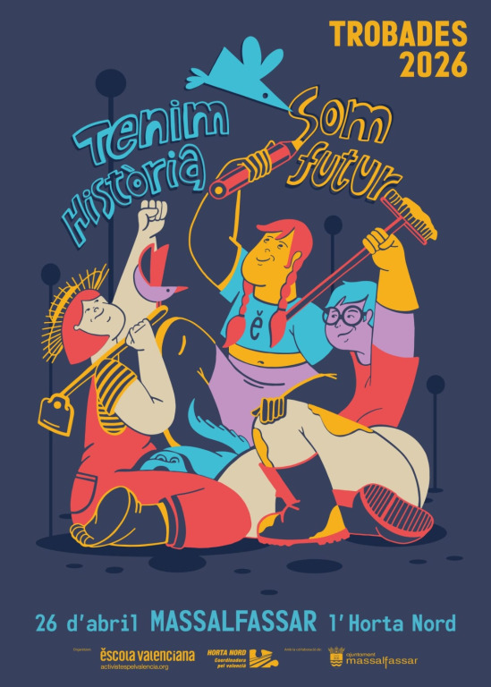 Les Trobades, organitzades per Escola Valenciana, són una festa amb dècades d’història que ha unit generacions senceres al voltant de la llengua i l’escola. Enguany, coincidint amb els 40 anys de les primeres Trobades i els 20 anys del Voluntariat pel Valencià, el lema és “Tenim història, som futur”: un missatge que reconeix el camí recorregut des de 1989 en la defensa del valencià i, alhora, ens anima a continuar construint col·lectivament el futur de la nostra llengua.